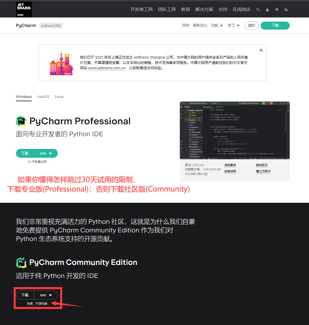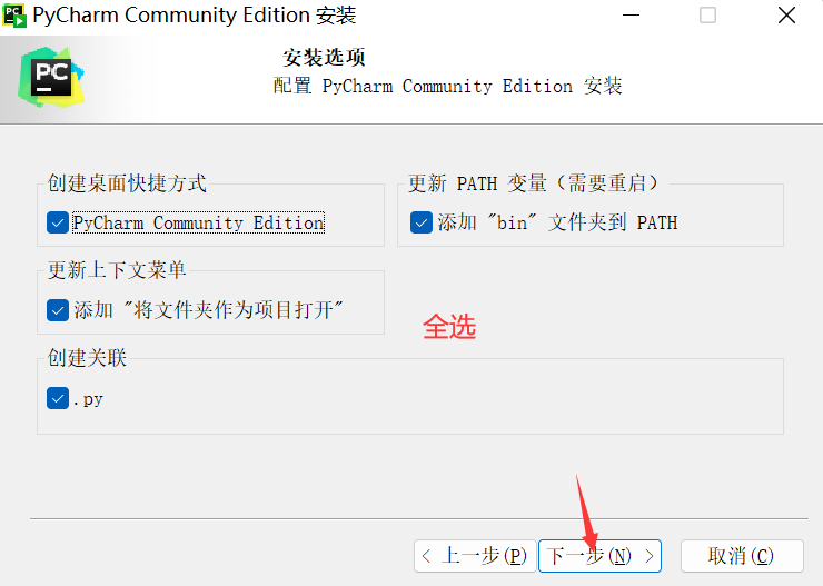 以安装免费的PyCharm社区版为例: