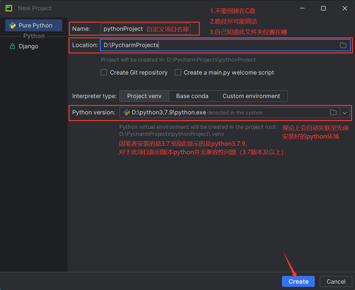 3.创建PyCharm项目并正确配置Python解释器