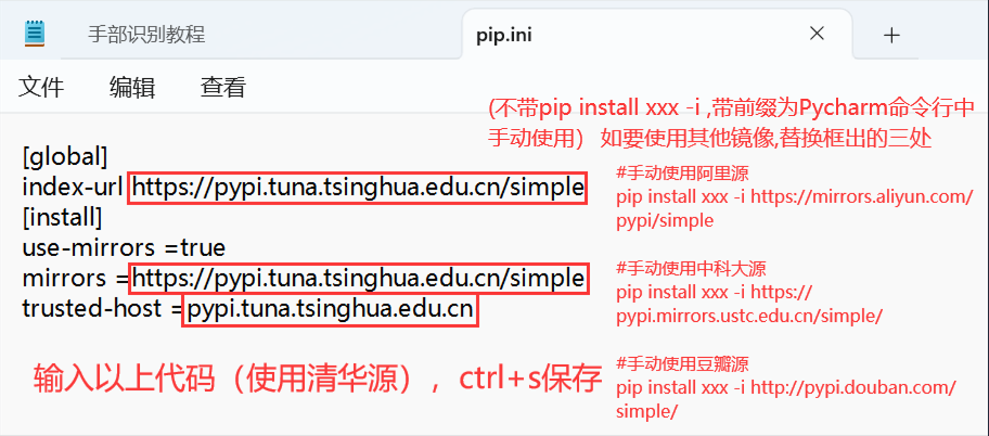 (1-1)pip换源方法1:永久设置pip指定国内镜像源(windows内)