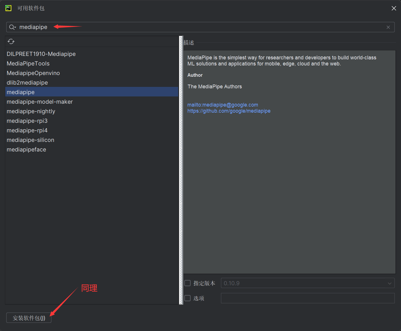 接着安装Mediapipe;